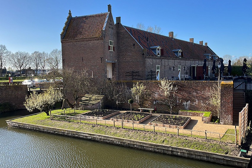 De ‘nieuwe’ benedentuin op Kasteel Ammersoyen is inmiddels ingeplant en ademt – net als het kasteel – een middeleeuwse sfeer. Het beplantingsplan bestaat uit een selectie van middeleeuwse medicinale planten, keukenkruiden, vormsnoeibomen en bloemdragende planten. Nu het voorjaarszonnetje hier en daar tevoorschijn komt, komt ook de middeleeuwse tuin tot leven. Peter Verhoeff heeft 13 april jl. een presentatie gegeven aan de tuinvrijwilligers op het kasteel over de bevindingen van het tuinhistorisch onderzoek en ons ontwerp dat daarop is geïnspireerd. Tijdens het bezoek heeft hij meteen enkele prachtige foto’s gemaakt van de tuin in bloei.